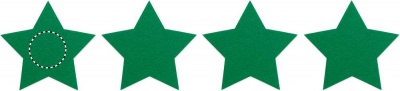 4 tähekujulise RPET-vildist rannaaluse komplekt, mis on pakitud kraftkarbis.