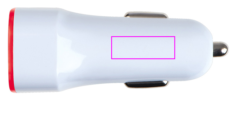 Stiilne laadimisadapter 12 V auto pistikupesa jaoks, millel on kaks pesa kiireks või tavaliseks laadimiseks, värviline rõngas põleb laadimise ajal. Trükime teie logo sõrmuse kohale.