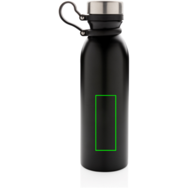 Lekkekindel vasest vaakumisolatsiooniga pudel musta silikoonist kandeaasaga. Ühe käega joomine tähendab, et kaant pole vaja hoida ega kaasas kanda. Kaasas kahekordse seinaga vaakumkonstruktsioon ja vase isolatsioon, mis tähendab, et see hoiab joogid kuumana kuni 8 tundi ja külmana kuni 24 tundi. Konstruktsioon takistab kondenseerumist pudeli välisküljel. Sisu: 600 ml.