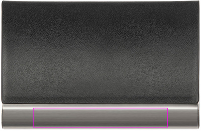 Metallist visiitkaardihoidja kunstnahast kaanega ja magnetkinnitusega. Logo on laseriga metallribale.