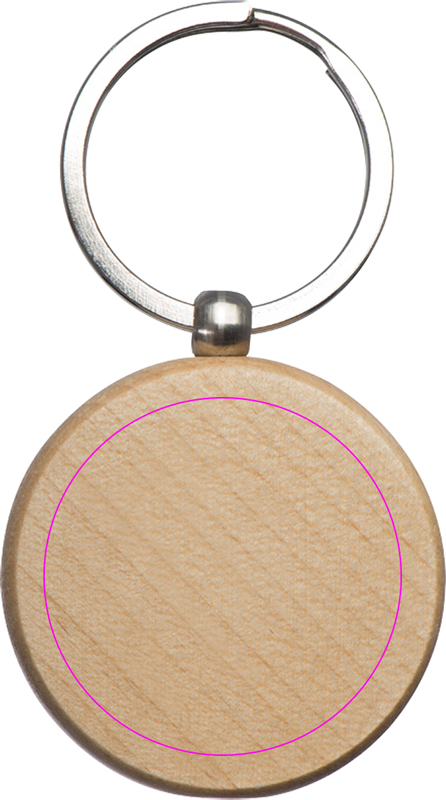 Ümmargune pöögipuust võtmehoidja võtmehoidjaga. Lasergraveerimise kaudu tuleb teie logo ideaalselt esile.