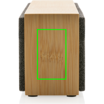 Luksuslik 10 W kõlar selge heli ja tugeva bassiga. Väliskest on valmistatud FSC 100% sertifitseeritud bambusest. Plastosad on valmistatud RCS (Recycled Claim Standard) sertifitseeritud ringlussevõetud ABS-ist. Taaskasutatud kogusisaldus: 23% kauba kogukaalust. RCS-sertifikaat tagab taaskasutatud materjalide täielikult sertifitseeritud tarneahela. Kõlariga on kaasas BT 5.1, mis tagab lihtsa ja sujuva töö kuni 10 meetri kaugusel ning väikese energiatarbimise. 1200 mah aku võimaldab mängida kuni 6 tundi ja seda saab täielikult laadida 2 tunniga. Vastuvõtufunktsiooni ja mikrofoniga (video)kõnedele vastamiseks. Pakitud, kui FSC mix kraft kasti. Kaasa arvatud RCS-sertifikaadiga taaskasutatud TPE laadimiskaabel.