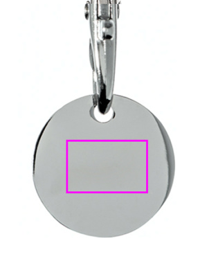 Metallinen avaimenperä, jossa neppari ja ostoskolikko. Kolikon toinen puoli on värillinen. Kaiverremme logosi hopeapuolelle.