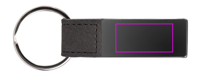 Metallin ja keinonahan yhdistelmästä valmistettu avaimenperä avaimenperällä. Logosi on kaiverrettu metallipinnalle.