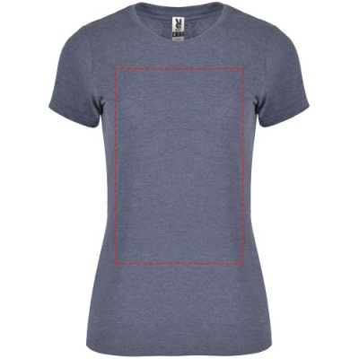 Lyhythihainen t-paita meleeratulla kankaalla. Tyköistuva malli. 1x1 ribbipääntie, jossa vahvistetut peitetyt saumat. Putkikudottu kangas. Irrotettava etiketti.