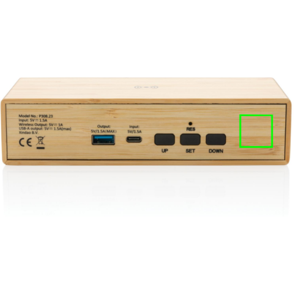 Logo trade mainostuote kuva: Herätyskello ja 5W langaton laturi bambusta