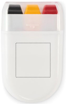 Maalaa vartalolle kansallisen lipun väreissä vahamaalilla PP-kotelossa ja PS-kannessa.