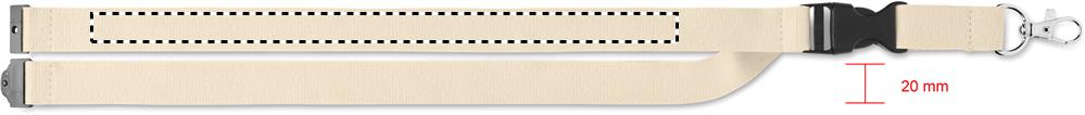 Puuvillakaulanauha, jossa on papukaijalukko, irrotettava pikalukko ja turvalukko, leveys 20 mm.