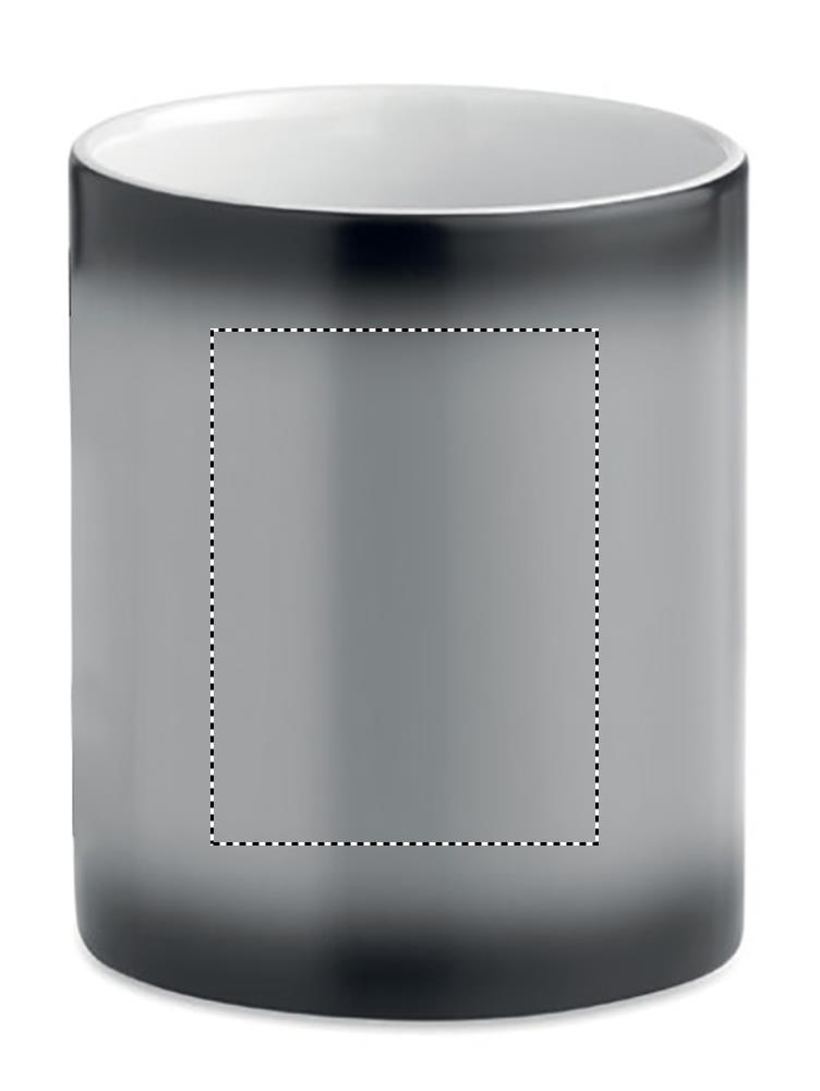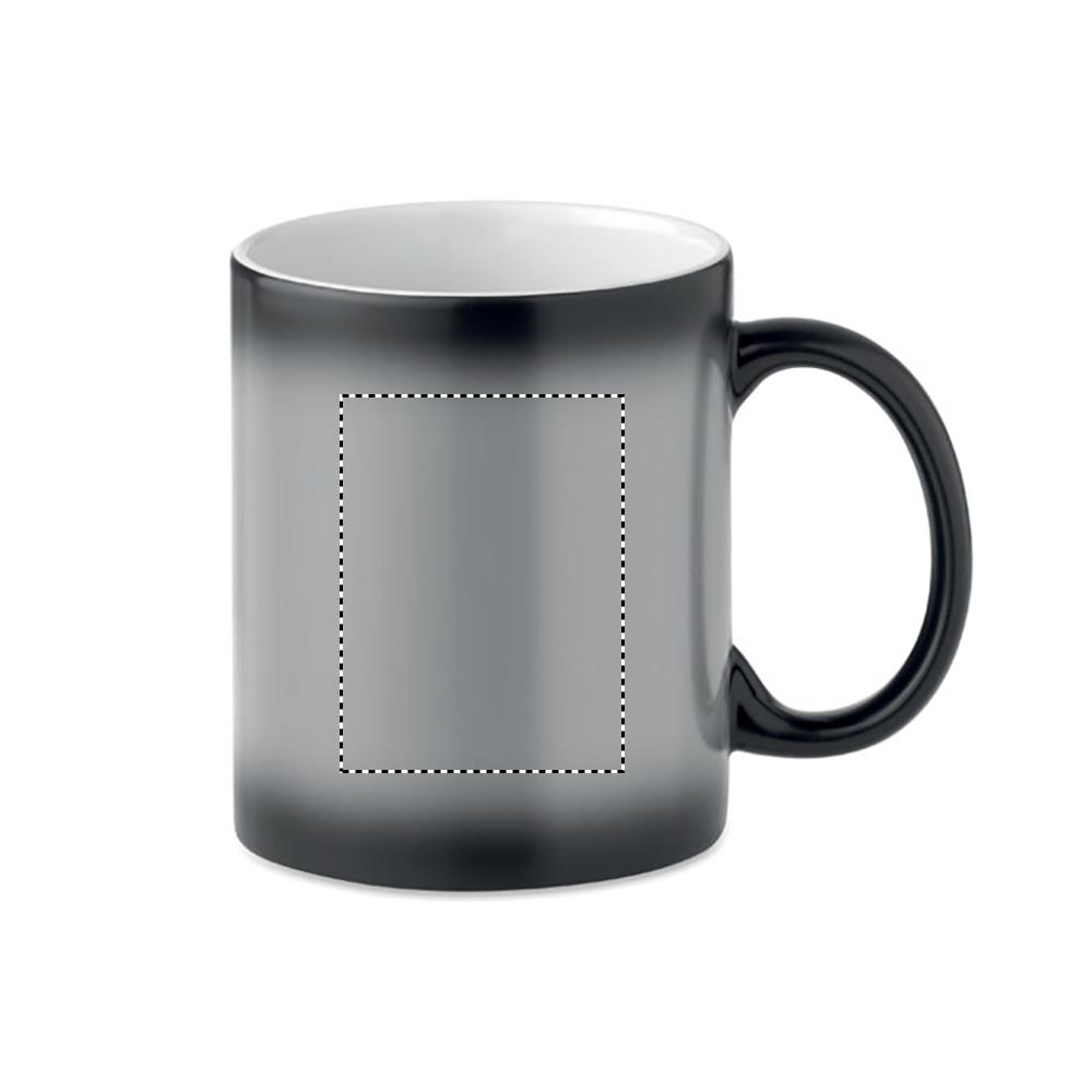 Keraaminen muki 300 ml, erikoispinnoite sublimaatiota varten. Muki muuttaa väriä ja tuo esiin painatuksen, kaadettaessa mukiin (vähintään) 50 ° C lämpöistä nestettä. Yksittäispakattuna valkoiseen pahvilaatikkoon.