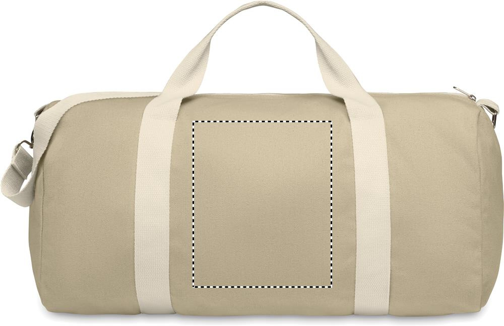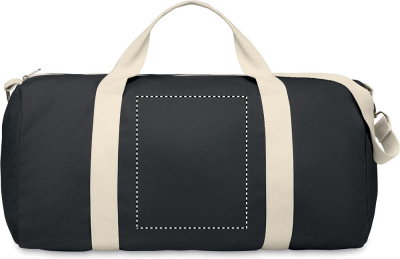 Kierrätetyistä kankaista valmistettu kassi (60 % kierrätettyä puuvillaa, 40 % kierrätettyä polyesteriä) 320 g/m² kahvalla, luonnonpuuvillanauha ja säädettävä ja irrotettava olkahihna.