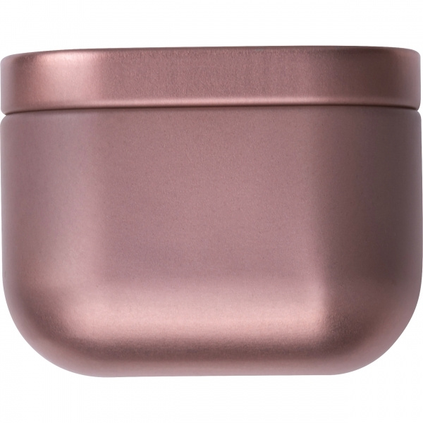 Kynttilä metallirasiassa (täytetty 60 g vahaa). Logosi on kiinnitetty kanteen laserkaiverruksella.
