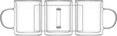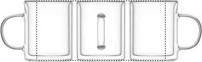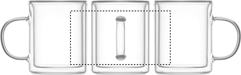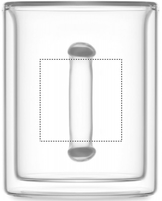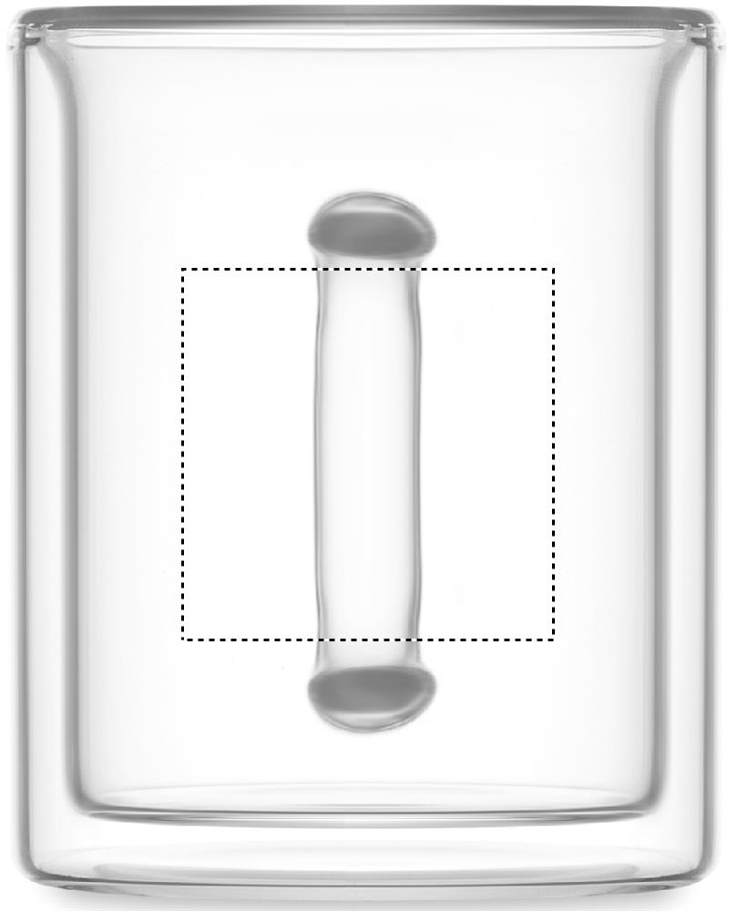 Kaksiseinäinen lasimuki, jonka tilavuus on 225 ml ja jossa on erikoispinnoite sublimaatiota varten.