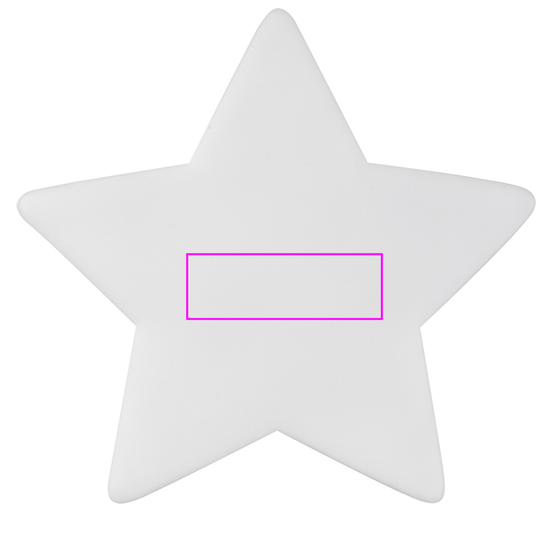 Suloinen pieni tähden muotoinen yövalo värinvaihtotoiminnolla. Mukana 3 nappiparistoa. Painamme logosi tähden keskelle.