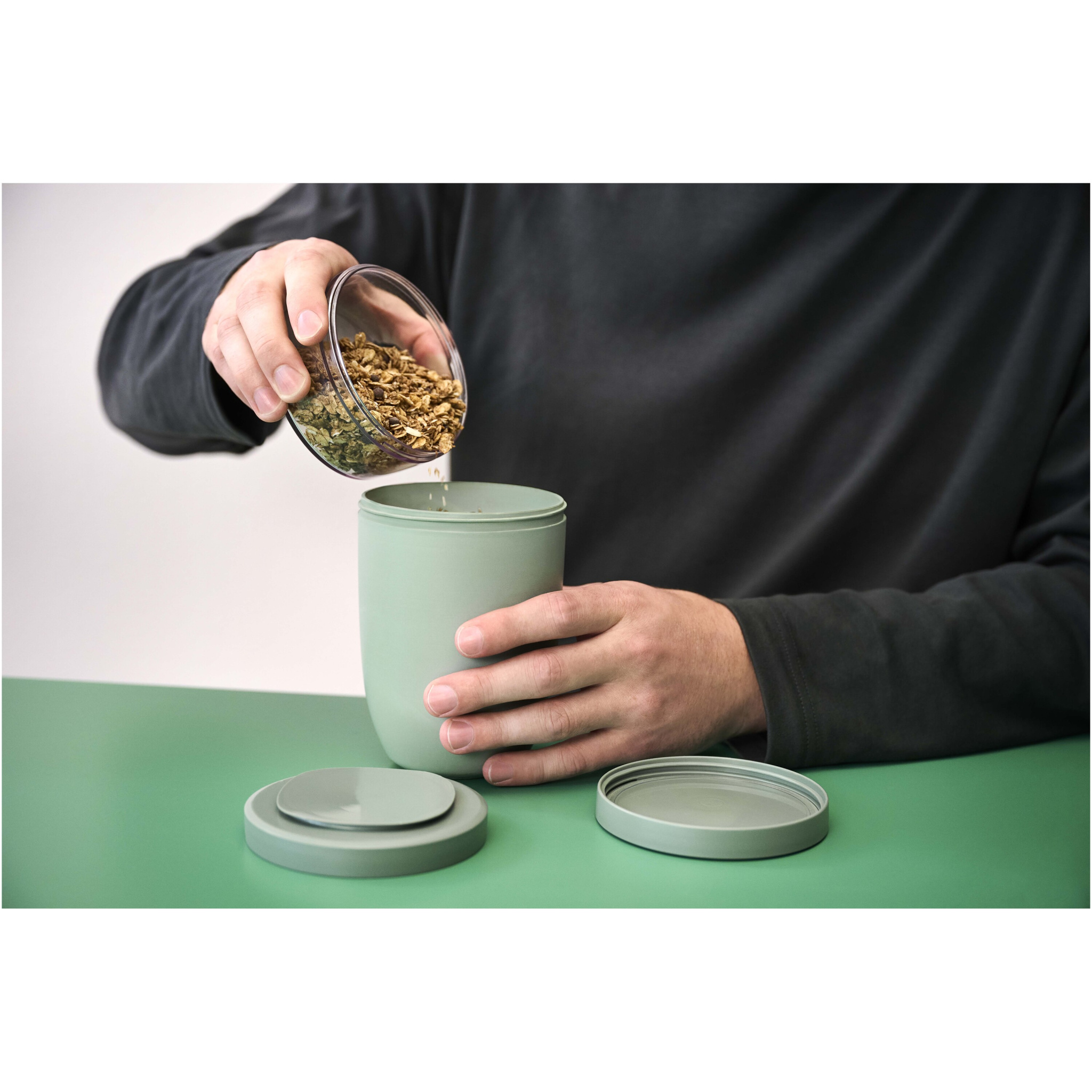 Eristetty lounasrasia, jossa on kaksi erillistä lokeroa ainesten siististi erillään pitämiseen. Jokaisessa rasiassa on kansi sekoittumisen estämiseksi, joten se sopii erinomaisesti aterioille, joissa on täytteitä, lisukkeita tai kastikkeita. Pitää ruoan kuumana 6–8 tuntia tai kylmänä jopa 12 tuntia. Yläosan läpinäkyvän säiliön tilavuus on 300 ml ja alemman säiliön 750 ml. Kestävistä materiaaleista valmistettu ulkopinta pysyy viileänä ja kuivana koskettaa. Käsinpesua suositellaan. Muovikannen osat ovat konepesun kestäviä. BPA-vapaa.