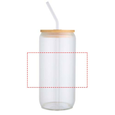 Borosilikaattilasista valmistettu purkki, jossa on lasipilli ja bambuinen kansi. Purkissa on ainutlaatuinen, uurrettu sisäpinta ja sileä ulkopinta, joka sopii erinomaisesti logon painattamiseen. Kannessa käytetty bambu on hankittu kestävästi, ympäristö- ja sosiaalinen vastuu huomioiden. Toimitetaan kierrätetystä kartongista valmistetussa lahjapakkauksessa. Tilavuus: 650 ml.