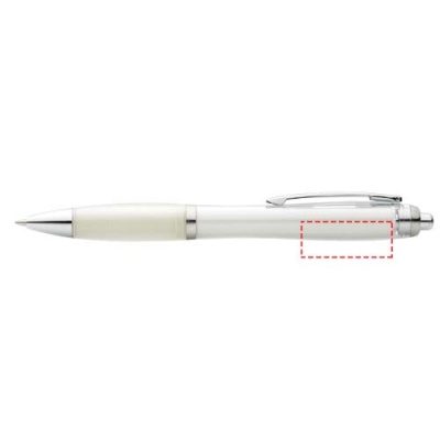 Kuulakärkikynä, jossa on click-toiminto. Pehmeä ote.