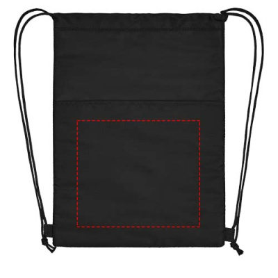 Kiristysnyörillinen jäähdytinlaukku, jossa mustat suljinnauhat. Avoin etutasku. Sopii 12 tölkille. Kestää jopa 5 kg painon.
