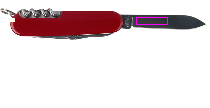 Ominaisuudet: 1.iso terä 2.pieni terä 3.korkkiruuvi 4.tölkinavaaja jossa: 5.-pieni ruuvimeisseli 6.pullonavaaja: 7.-iso ruuvimeisseli 8.-langanpoistaja kalvin 9.rei'itin 10.ompelusilmukka 11. avaimenperä 12.pinsetit 13.hammastikku 14.sakset 15.koukku 16.puusaha