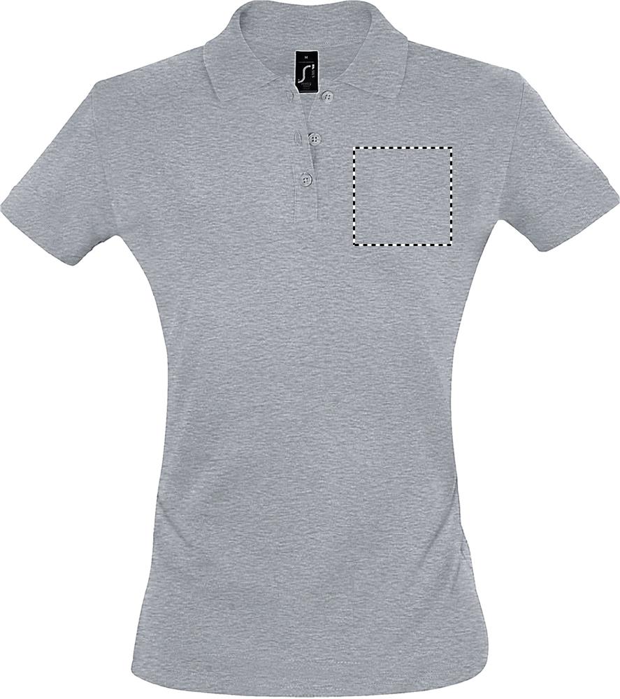 SOL'S PERFECT naisten poolopaita, 1x1 joustinneule kaulus ja hihansuut, vahvistettu kaulasauma, 2 sävyyn sopivaa helmipnappia. Moderni istuvuus sivusaumalla, varanappi sisäpuolella. Kankaan yksityiskohdat: 180g / m² 100% kammattua kehrättyä puuvillaa. OEKO-TEX®. Myydään vain painettuna
