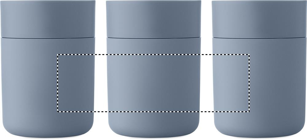 PP-muki silikoniholkilla ja PP-liukukannella. Tilavuus: 330 ml. Koska tämä on yksiseinäinen muki, lämmönsiirtoa voi silti tapahtua.