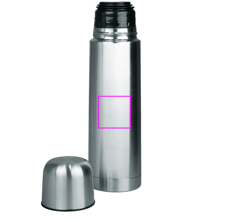 Kaksiseinämäinen ruostumattomasta teräksestä valmistettu eristyspullo 0,5 l. Nepparikiinnitys mahdollistaa nopean kaatamisen kuppiin. Logosi laserkaiverretaan pulloon. Jokainen eristyspullo on pakattu yhteen pahvilaatikkoon.