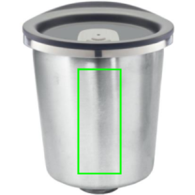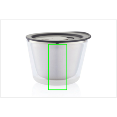 Uždaromas, izoliuotas ir pakankamai kompaktiškas, kad tilptų po kavos aparatu (227 ml). Tai taip pat labai higieniška, nes puodelio pamušalas pagamintas iš nerūdijančio plieno, o ne iš plastiko. Sukurtas taip, kad puodelį būtų lengva išimti ir perdirbti. Registruotas dizainas®