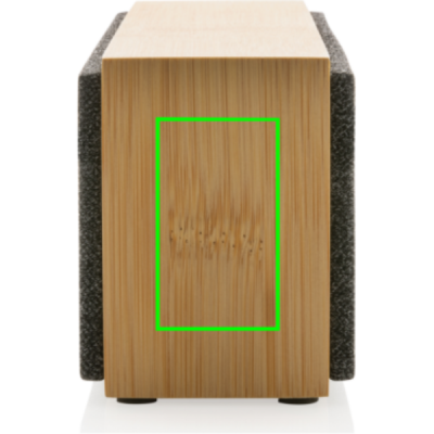 Prabangus 10 W garsiakalbis su aiškiu garsu ir stipriais žemaisiais dažniais. Išorinis korpusas pagamintas iš FSC 100% sertifikuoto bambuko. Plastikiniai komponentai pagaminti iš RCS (Recycled Claim Standard) sertifikuoto perdirbto ABS. Bendras perdirbtas kiekis: 23 % nuo bendro gaminio svorio. RCS sertifikatas užtikrina visiškai sertifikuotą perdirbtų medžiagų tiekimo grandinę. Garsiakalbyje yra BT 5.1, kad būtų lengva ir sklandžiai veikti iki 10 metrų ir sunaudoti mažai energijos. 1200 mah baterija leidžia žaisti iki 6 valandų ir gali būti visiškai įkrauta per 2 valandas. Su paėmimo funkcija ir mikrofonu atsiliepti į (vaizdo) skambučius. Supakuota, jei FSC mix kraft dėžutė. Įskaitant RCS sertifikuotą perdirbtą TPE įkrovimo laidą.