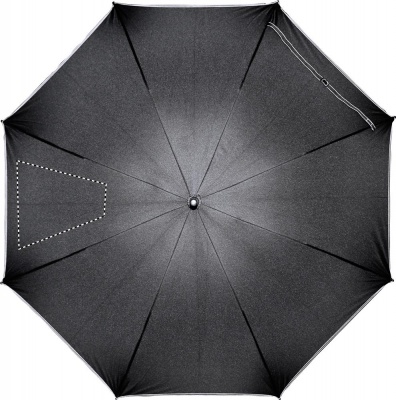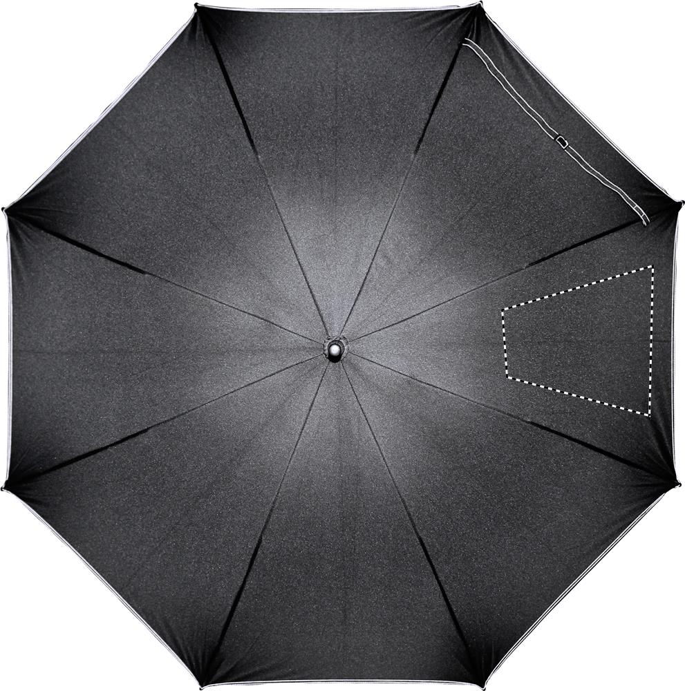 23 collu automātiski atverams vēja necaurlaidīgs lietussargs 190T pongee ar stiklplasta kātu un ribām krāsā ar melniem plastmasas uzgaļiem. Paneļi melnā krāsā ar atbilstošas krāsas šuvēm. Taisns melns plastmasas rokturis. Manuāla aizvēršana.
