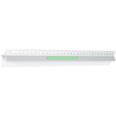 Alumīnija lineāls ar 5 dažādiem mērogiem (1:20;1:25;1:50;1:75;1:100), viena puse neapdrukāta reklāmas nolūkos.