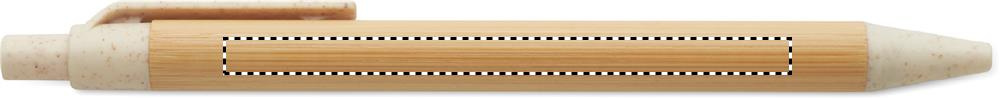 Lodīšu pildspalva ar spiedpogu, bambusa korpusu, kviešu salmiem (50%) un ABS plastmasas (50%) furnitūru. Zila tinte.