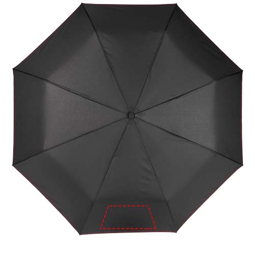 Автоматически открывающийся и закрывающийся складной зонт с куполом из эпонж полиэстера. Прочный металлический стержень, высококачественная рама со спицами из стекловолокна, обеспечивающая максимальную гибкость в ветреную погоду. Поставляется с чехлом и может легко поместиться в сумку или рюкзак для удобного ношения. На ручке с мягким матовым покрытием присутствуют цветные элементы, а части купола и чехла прошиты. Большая зона для декорирования на каждо.