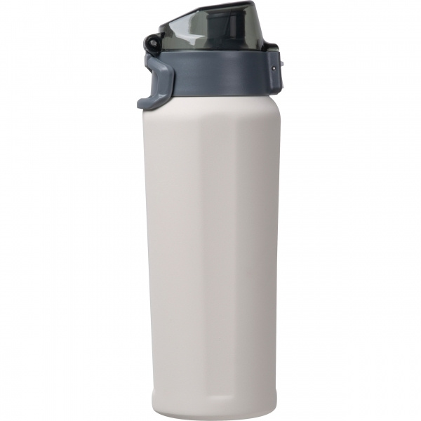 Стильная бутылка из переработанной нержавеющей стали, с двойными стенками и вакуумной изоляцией, чтобы напитки оставались горячими или холодными в течение длительного времени. Емкость 600 мл, практичная крышка с защелкой для удобства использования. Ваш логотип будет выгравирован по центру лазерной гравировкой — идеально для брендинга. Функциональная, высококачественная и идеальная для использования на ходу.