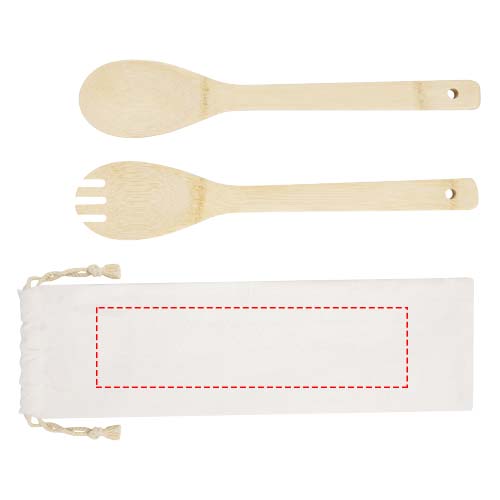 Бамбуковый комплект из салатной ложки и вилки, удобный для повседневных семейных ужинов. Используемый бамбук поставляется и производится в соответствии со стандартами устойчивого развития.