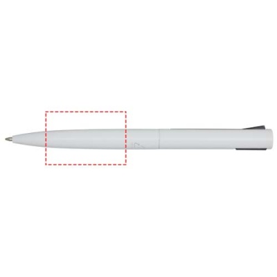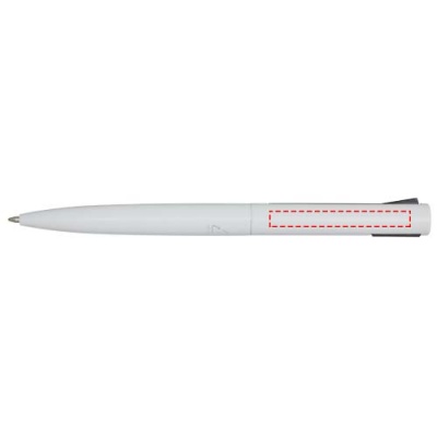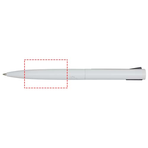 Шариковая ручка, верхняя часть корпуса которой изготовлена из переработанного пластика, а нижняя часть — из переработанного алюминия. Зажим изготовлен из железа. Цвет чернил: черный. Длина непрерывной линии: 1000 метров. Размер пера: 1,0 мм.