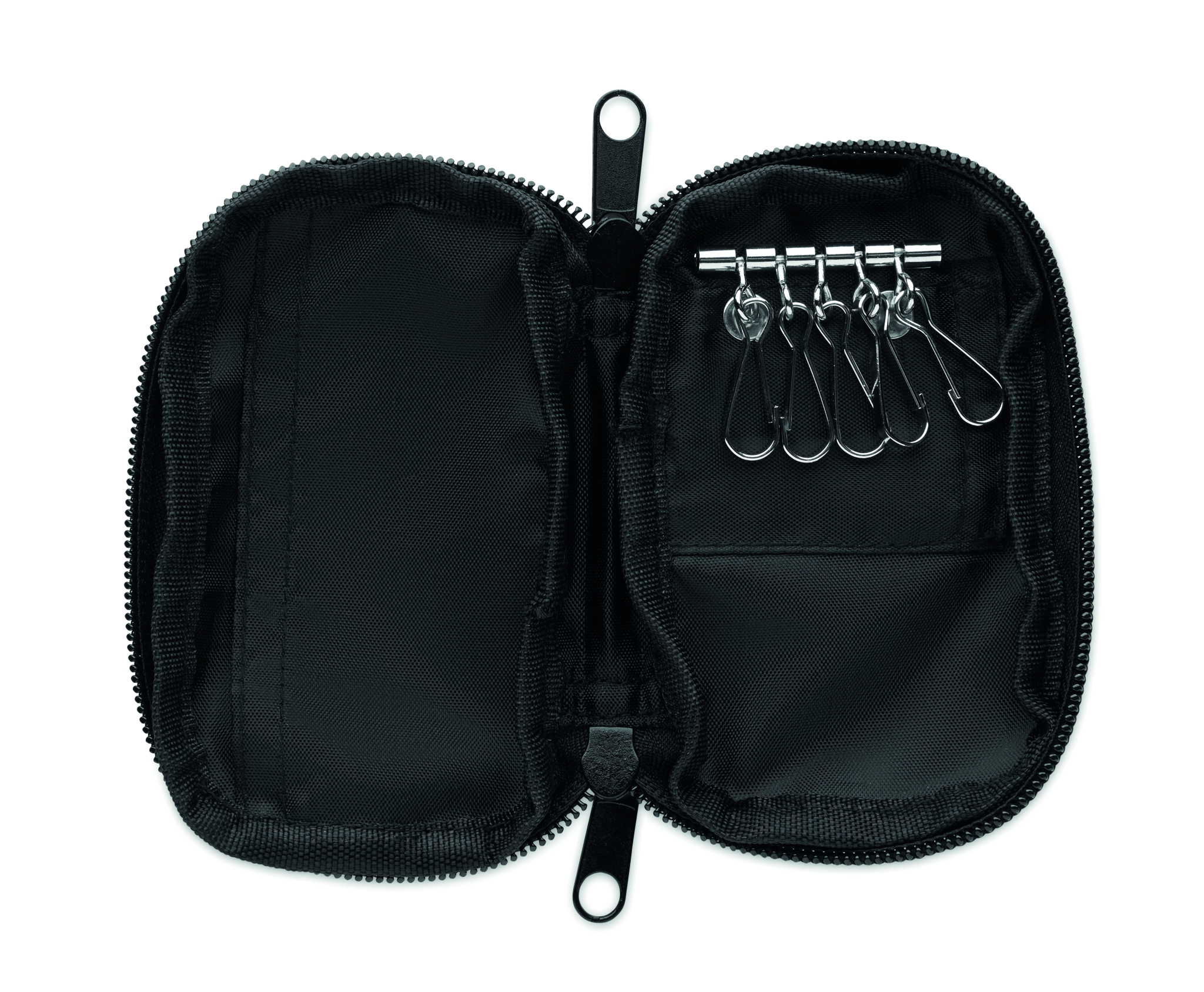 Zippered key case in 300D RPET with 210D RPET lining. Featuring 5 key holders.