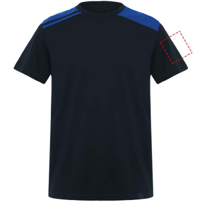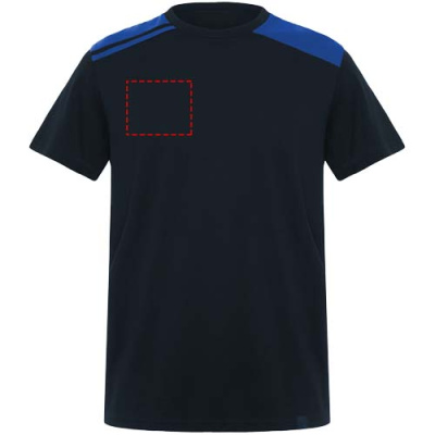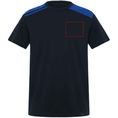 Футболка с коротким рукавом в дизайне с цветовой комбинацией. Круглый вырез с контрастными закрытыми внутренними швами. Боковые швы. Контрастные наплечники и детали.