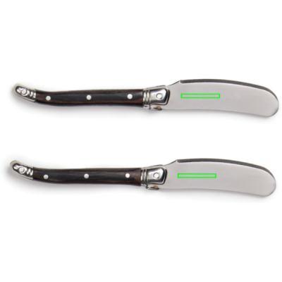Эксклюзивный набор из 2 ножей для масла из нержавеющей стали. Эти ножи идеально подходят для намазывания масла или джема на тосты, рогалики, кексы и многое другое. Высококачественные лезвия из нержавеющей стали обеспечивают плавное и легкое намазывание, а прочные ручки из дерева пакка обеспечивают удобный захват. Набор упакован в эксклюзивную подарочную коробку, что делает его идеальным подарком на любой случай.