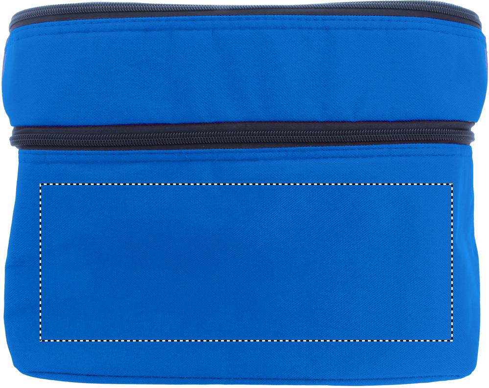 Сумка-кулер с двумя фольгированными изнутри отделениями и регулируемым наплечным ремнем.