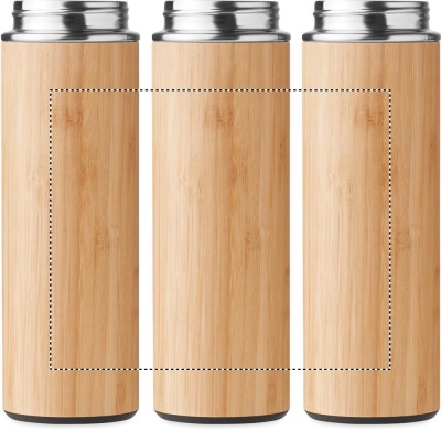Термос из нержавеющей стали с двойными стенками в бамбуковом корпусе и крышкой-ручкой из полипропилена. Емкость: 450 мл. Герметична.