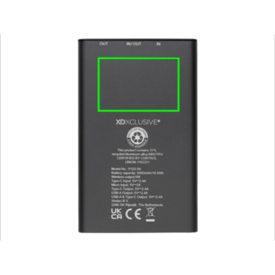 Powerbank изготовлен из сертифицированного RCS (Recycled Claim Standard) переработанного алюминия и ABS. Общее содержание переработанных материалов: 31 % от общего веса изделия. Сертификация RCS гарантирует полностью сертифицированную цепочку поставок переработанных материалов. Алюминий не теряет своих характеристик в процессе переработки и может перерабатываться бесконечно. Powerbank содержит долговечный литий-полимерный аккумулятор класса A емкостью 5000 мАч. Беспроводное зарядное устройство поддерживает беспроводную зарядку до 5 Вт. Индикаторы питания покажут оставшийся уровень энергии, поэтому вы всегда будете знать, когда следует подзарядить. Изделие и аксессуары на 100 % не содержат ПВХ. В комплект входит зарядный кабель типа C из сертифицированного RCS переработанного алюминия, TPE и PET. Упаковано в упаковку FSC® mix. Выход USB 5/2,4 А, выход Type C: 5 В/2,4 А. Вход Type C: 2,4 А. Вход Micro USB: 5 В/2 А.