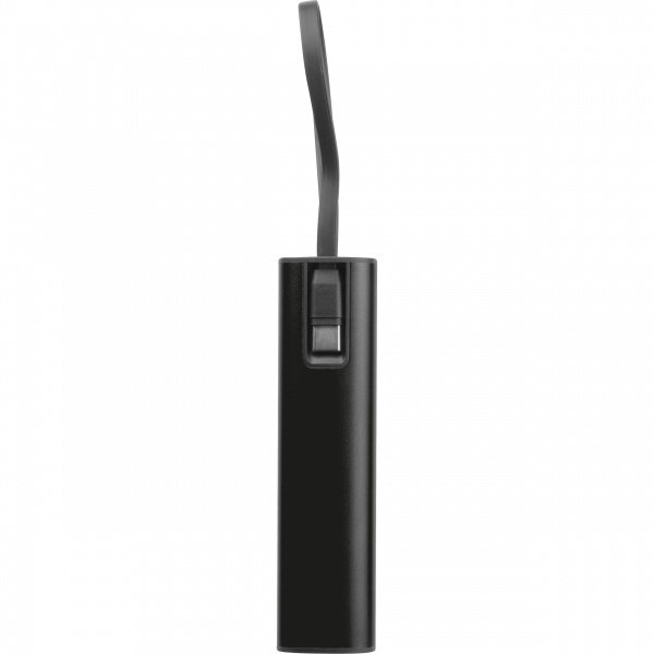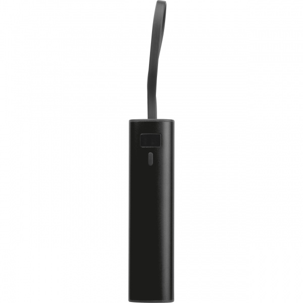 Внешний аккумулятор из алюминия с литий-ионным аккумулятором ёмкостью 5000 мА·ч, индикатором уровня заряда и встроенным кабелем USB-C для зарядки. В комплект входит кабель Type-A/Type-C длиной 30 см. Ваш логотип наносится под дисплеем с помощью лазерной гравировки.