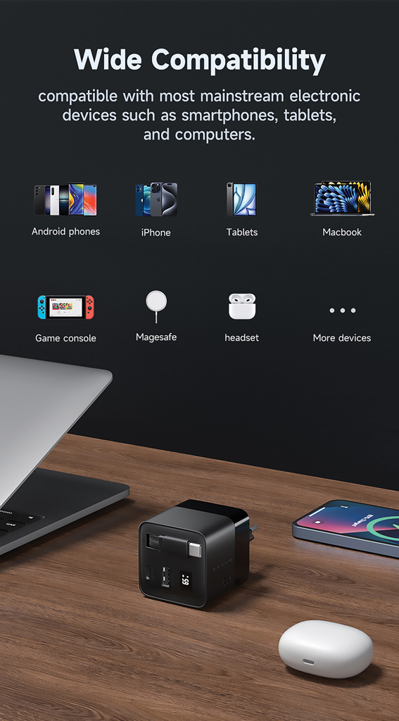 Встречайте самое умное зарядное устройство мощностью 65 Вт с кабелем, который всегда под рукой. Mendocino — это зарядное устройство PD GaN мощностью 65 Вт со встроенным выдвижным кабелем USB-C длиной 80 см, благодаря которому вы можете заряжать устройство, не доставая отдельный кабель. Устройство также поставляется со сменными вилками европейского и британского стандартов, что делает его идеальным спутником в поездках. GaN — это технология зарядки нового поколения, которая обеспечивает более компактный размер, меньшее нагревание и более высокую энергоэффективность. Mendocino заряжает все ваши устройства на полной скорости, включая ноутбуки, планшеты и телефоны, и может заряжать до трех устройств одновременно благодаря дополнительным портам USB-C и выходу USB-A. Mendocino изготовлено из переработанного огнестойкого ПК, сертифицированного по стандарту RCS (Recycled Claim Standard). Общее содержание переработанных материалов: 18% от общего веса изделия. Изделия Urban Vitamin производятся без ПВХ и упакованы в упаковку с уменьшенным количеством пластика.