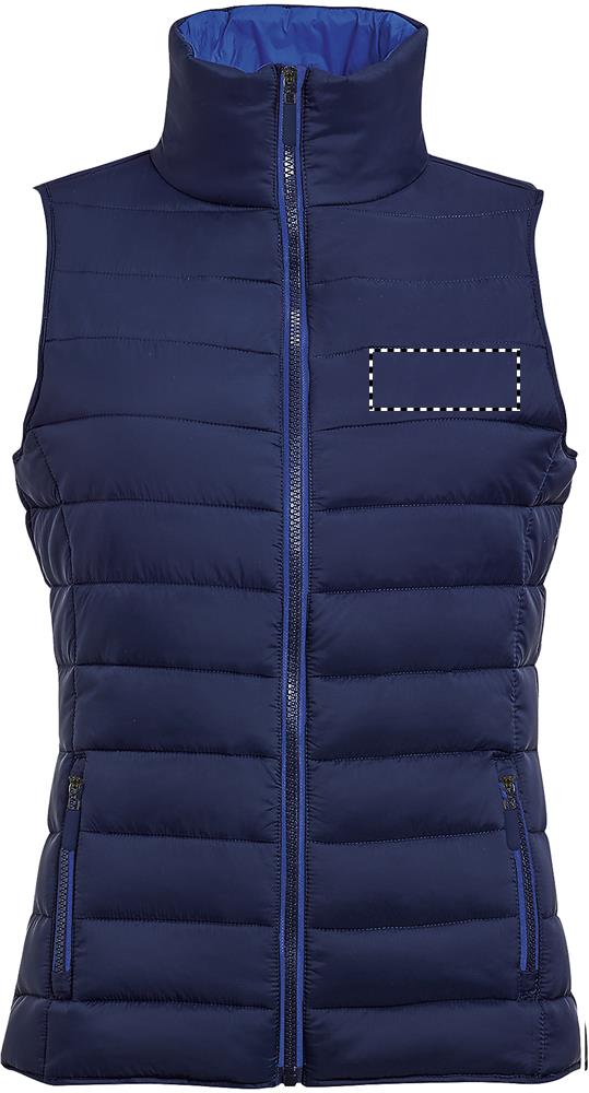 SOL'S WAVE Женский утеплитель/жилет из легкого материала. Это безрукавная версия популярной куртки Ride, но с большей свободой движений. Также можно использовать как дополнительный слой под курткой. Ветро- и водоотталкивающий материал, 2 кармана со стильными молниями и подкладкой в тон, высокий воротник, стильный крой, усиление тон в тон по подолу. Детали ткани: 100% нейлон, линолеум Продается только с принтом