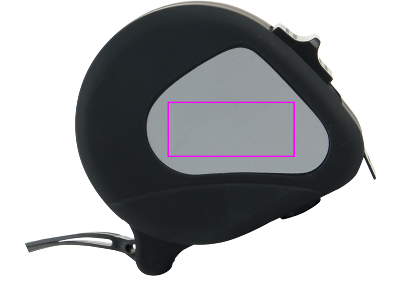 Stålmåttband med en mätlängd på 5 meter, låsslid, snabbknapp och handrem. Gummifinishen ger en särskilt behaglig känsla. Vi trycker din logotyp på silveremblemet.