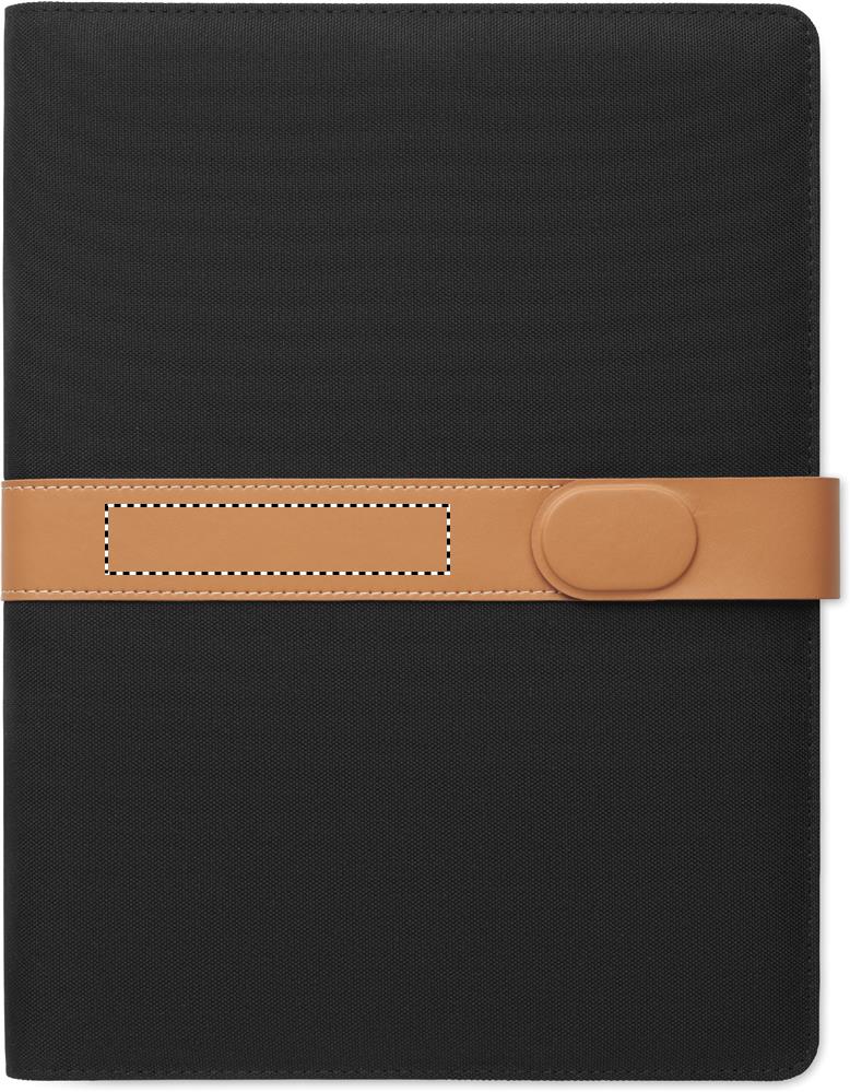 A4 konferensmapp i RPET med detaljer i konstläder. Utbytbara A4-anteckningsblock, 30 linjerade sidor med återvunnet papper. Pennhållare. 4 korthållare, 3 små fickor och ett stort fack. Magnetisk stängning.