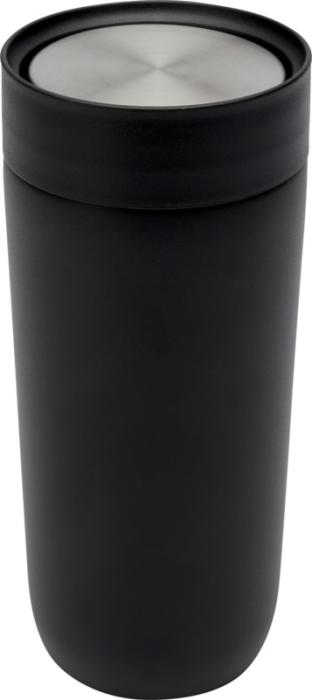 Förstklassig termos för användning när du är på språng med en praktisk öppningsmekanism i rostfritt stål som gör det möjligt att öppna den med en hand. RCS-certifierad stomme i rostfritt stål med slitstark ytbeläggning. Locket är tillverkat av RCS-certifierat rostfritt stål och PP-plast. Kopparplätering och keramisk beklädnad. Passar de flesta vanliga bilmugghållare. Håller dryckerna varma i tolv timmar eller kalla i 24 timmar. Levereras i en presentförpackning av återvunnen kartong. Volymkapacitet: 350 ml.