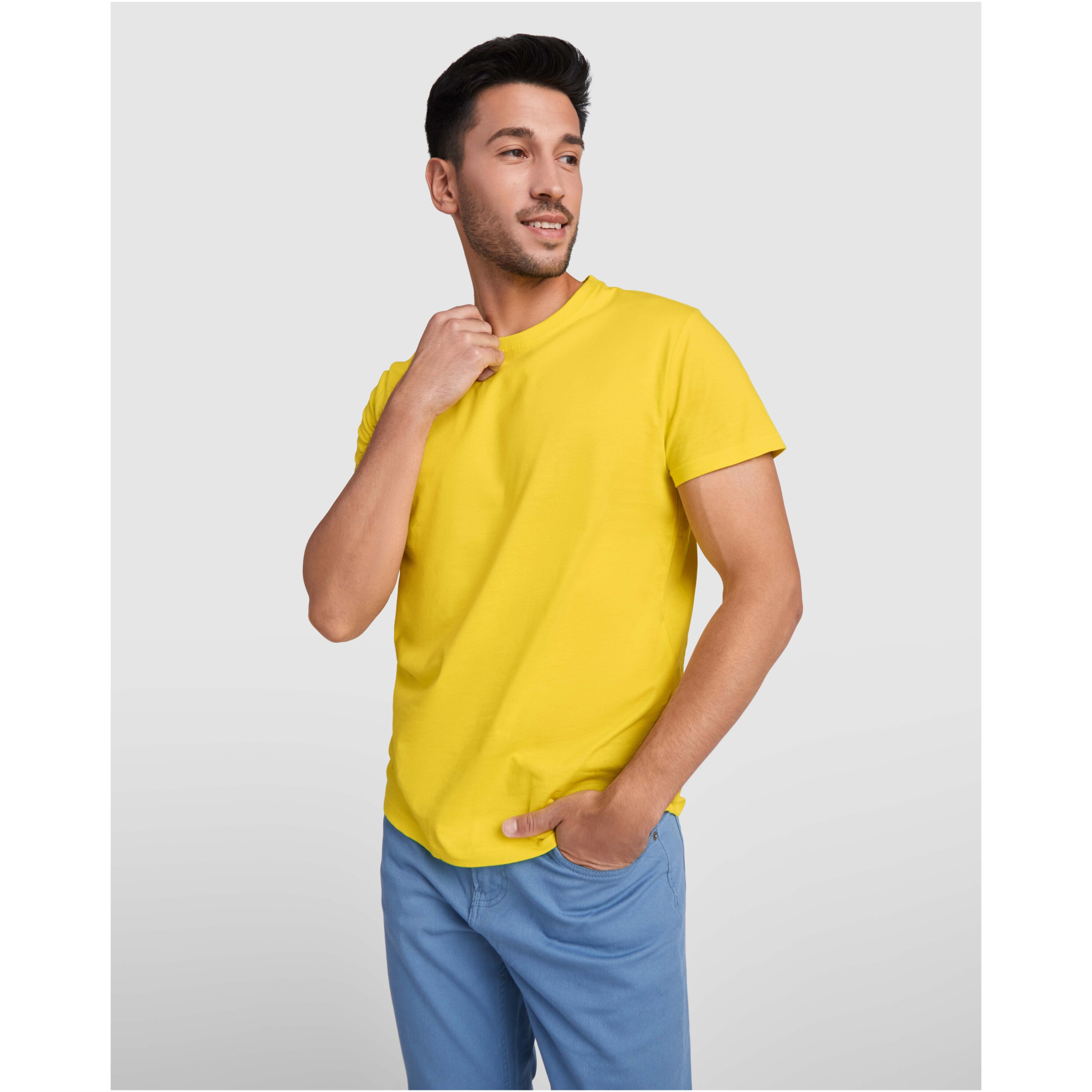 Kortärmad t-shirt med 4-lager rundhalsad ringning och förstärkta täckta sömmar i krage och axlar. Sidosömmar. Storlek 4XL och 5XL finns endast i vissa färger. Avtagbar etikett.