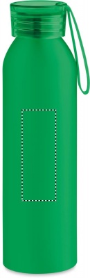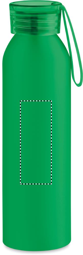 Flaska i återvunnen aluminium med PS-locket och silikonhängare. Kapacitet: 600 ml. En enkel och lätt flaska för vardagen och utmärkt för att öka din varumärkesexponering. Det är viktigt att hålla vätskebalansen under dagen, så fyll den här flaskan med vatten och ha den med dig. Läcker inte. Tål ej diskmaskin.