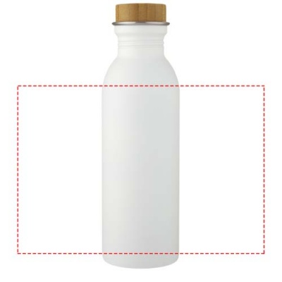 Sportflaska i 18/8 rostfritt stål med enkelvägg och bambulock. BPA-fri, testad och godkänd enligt tysk lagstiftning om livsmedelssäkerhet (LFGB). Testad och godkänd för ftalatinnehåll enligt REACH-förordningarna. Den bambu som används är från hållbara, miljömässigt och socialt ansvarsfulla källor. Volymkapacitet 650 ml. Handdisk rekommenderas. Levereras i en återvunnen presentförpackning av kartong.