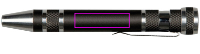 Skruvmejselsats i metall med åtta olika bits. Vi applicerar ditt reklambudskap på skaftet med hjälp av lasergravering.